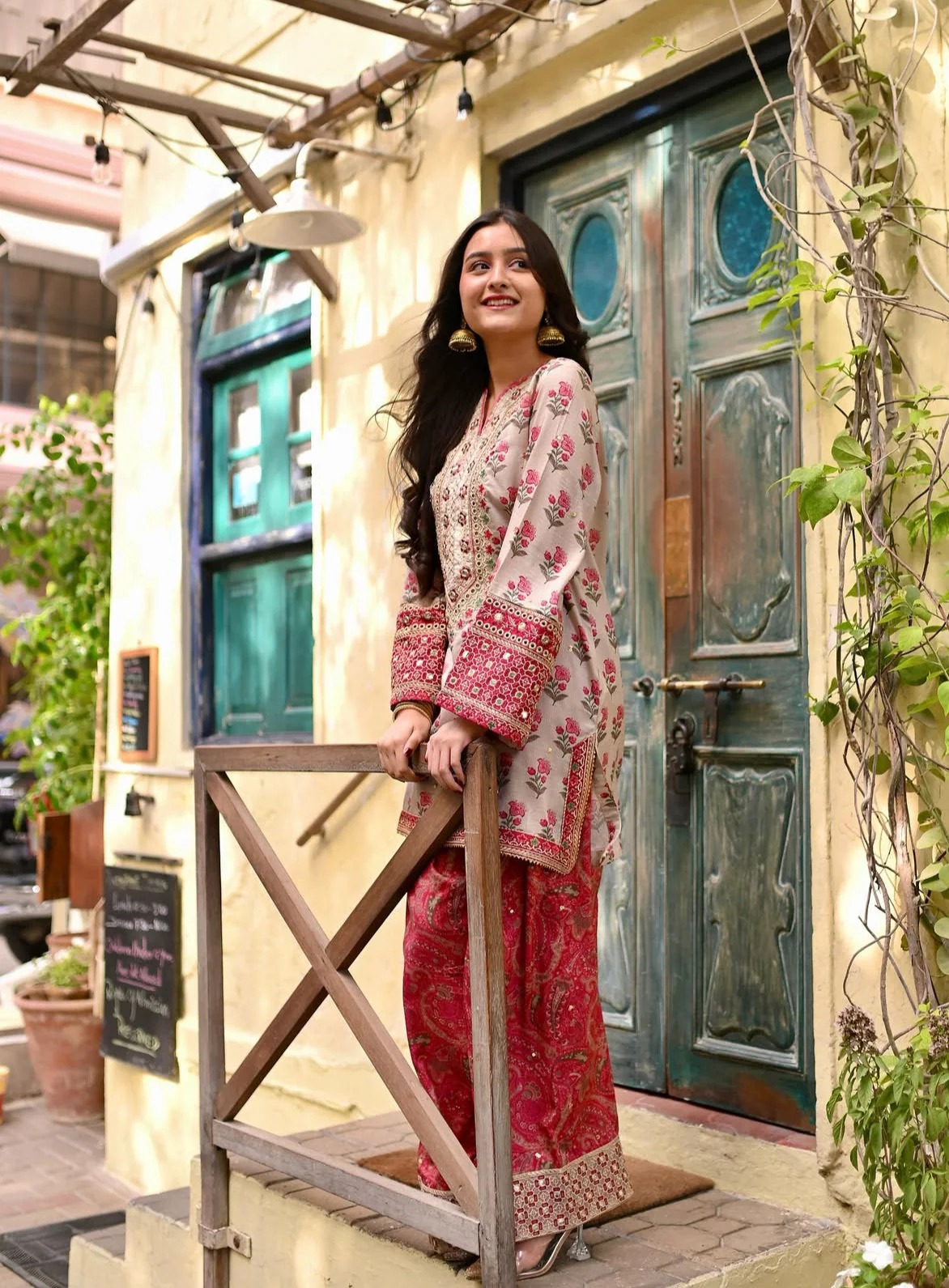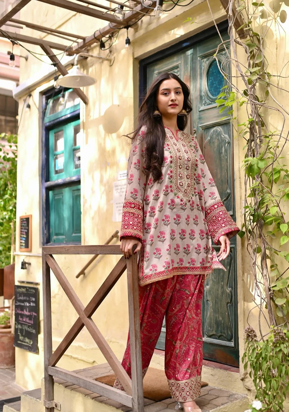 Beautiful soft cotton fabric Bagru print cord set with beautiful embroidery Detailing and Farsi salwar.